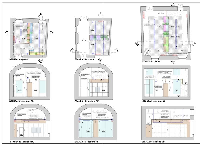 Si è studiato un intervento volto a ridurre i tempi di riverbero esistenti per migliorare l’acustica interna dei locali.