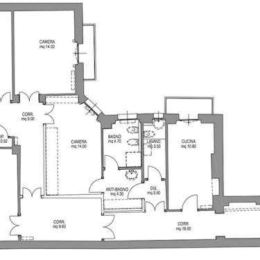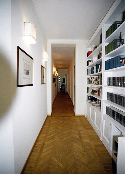 La ristrutturazione dell'appartamento aveva come obiettivo prioritario il recupero degli spazi di distribuzione che risultavano numerosi rispetto agli spazi di abitazione che comunque non dovevano diminuire in quantità.