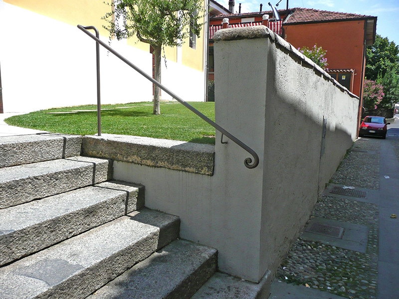 Il sagrato caratterizzato dalla scalinata a doppia rampa curvilinea che si sviluppa a nord della chiesa di San Paolo rappresenta l’accesso storico alla Parrocchiale ed un percorso privilegiato dalla collettività. Le precarie condizioni della balaustrata e dei gradini antecedenti l’intervento di restauro non avevano minimamente modificato le abitudini della comunità che continuava ad utilizzare questo accesso consolidato nella memoria collettiva anche dopo la realizzazione della scalinata pubblica. Obiettivo del progetto è stato quindi il restauro del bene per tutelarne sia la valenza storica sia la forte vocazione di percorso privilegiato e garantirne la fruibilità in completa sicurezza all’intera collettività.