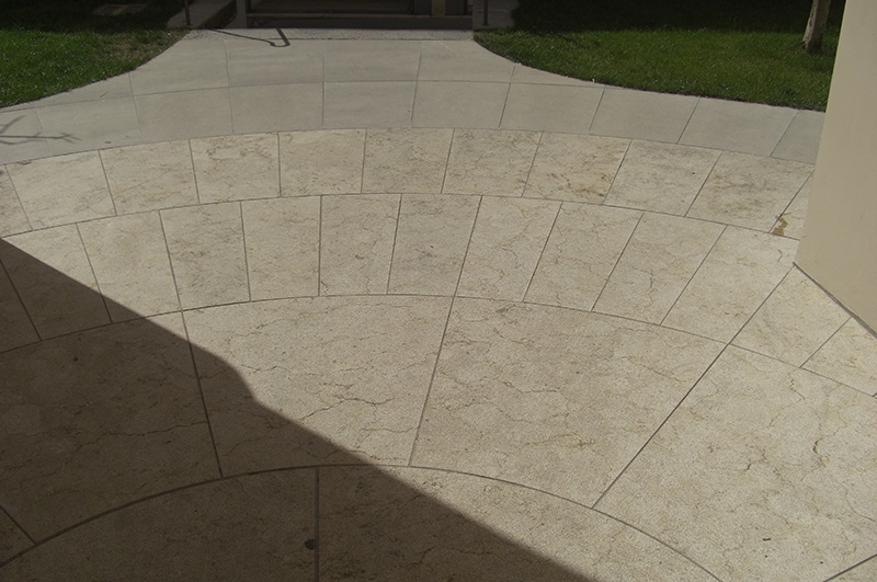 - Sagrato sud. Il progetto ha riguardato la sistemazione della pavimentazione in corrispondenza dell'ingresso laterale sud che risultava molto sconnessa e degradata. La nuova pavimentazione è stata realizzata a casellario con lastre di pietra in due differenti cromie che riproducono il disegno di un calice. Il percorso che collega l'ingresso laterale alla sagrestia ed alla rampa preesistente è stato realizzato con tondi in pietra distanziati e semplicemente appoggiati sul tappeto erboso.