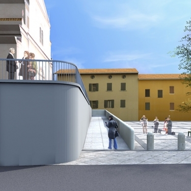 Fra le diverse soluzioni è stato ipotizzato anche un disegno di riassetto generale della piazza che garantisca “un’accessibilità allargata” ai differenti livelli del sagrato e della piazza comunale: una strada-rampa da realizzarsi secondo le linee guida per il superamento delle barriere architettoniche del MIBAC.