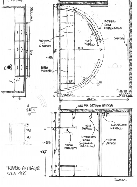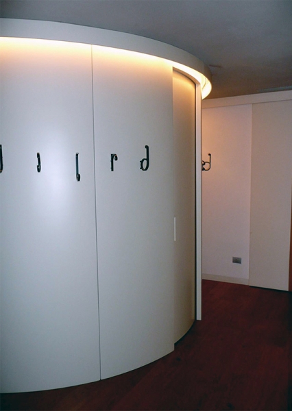 Il progetto ha interessato la fusione di due unità immobiliari e lo studio della distribuzione dei locali d’abitazione, degli impianti, delle finiture e degli arredi. Lo studio preliminare ha diversificato i tre diversi livelli distributivi e tipologici a differenti momenti dell’abitare, privilegiando le zone dedicate al living ed alla molteplicità di funzioni ad essa correlate. Dall’ingresso si accede direttamente alla grande zona giorno dove trovano spazio un grande tavolo da pranzo, due zone relax, un’area dedicata allo studio ed un blocco semicircolare destinato a guardaroba-servizio per gli ospiti.