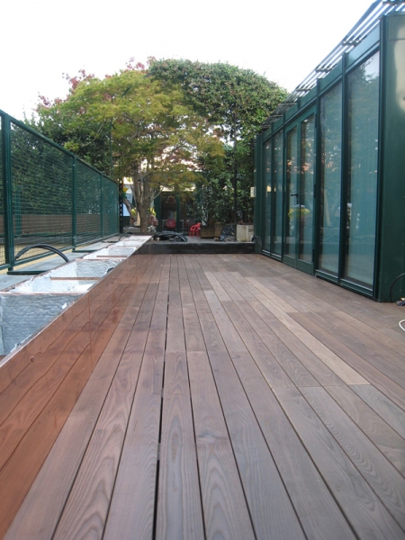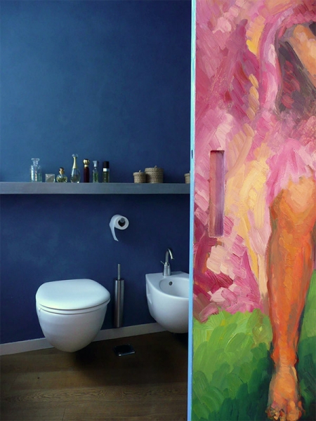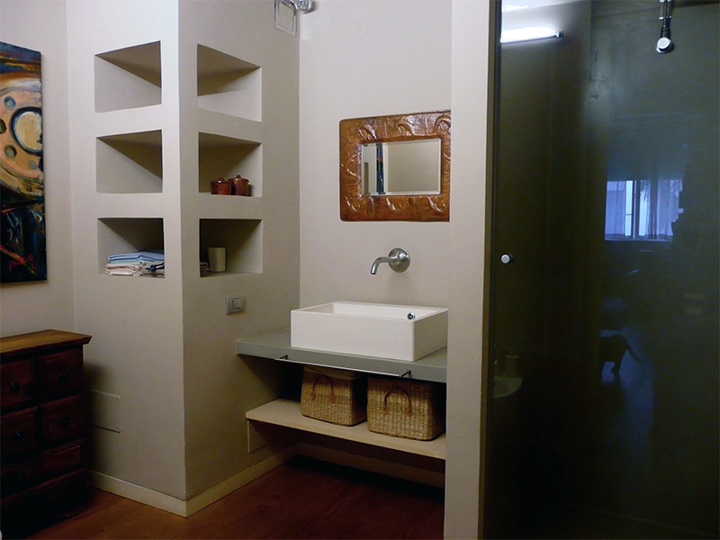 Entrambe le serre affacciano su un’ampia terrazza, che è stata oggetto di un accurato studio del verde. Elemento unificatore dei diversi ambienti è il pavimento in parquet di rovere, trattato con prodotti naturali, che domina zona giorno e zona notte entrando anche nei bagni. Unica eccezione alcune zone di passaggio ed i piani dei bagni che sono stati realizzati in resina con coloriture diverse. Anche la maggior parte degli arredi è stata realizzata a disegno. Le grandi porte scorrevoli dipinte della zona notte sono state progettate come quadri che arricchiscono la funzione di divisione degli spazi diventando veri e propri elementi d’arredo.